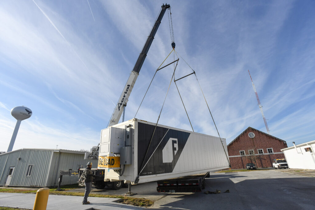 Delivery of an innovative, fully automated, controlled environment Freight Farm has arrived at the University of Maryland Eastern Shore. The vertical hydroponic agricultural system housed inside of a 320-square-foot (tractor trailer-sized) container will expand research and education opportunities for faculty and students.