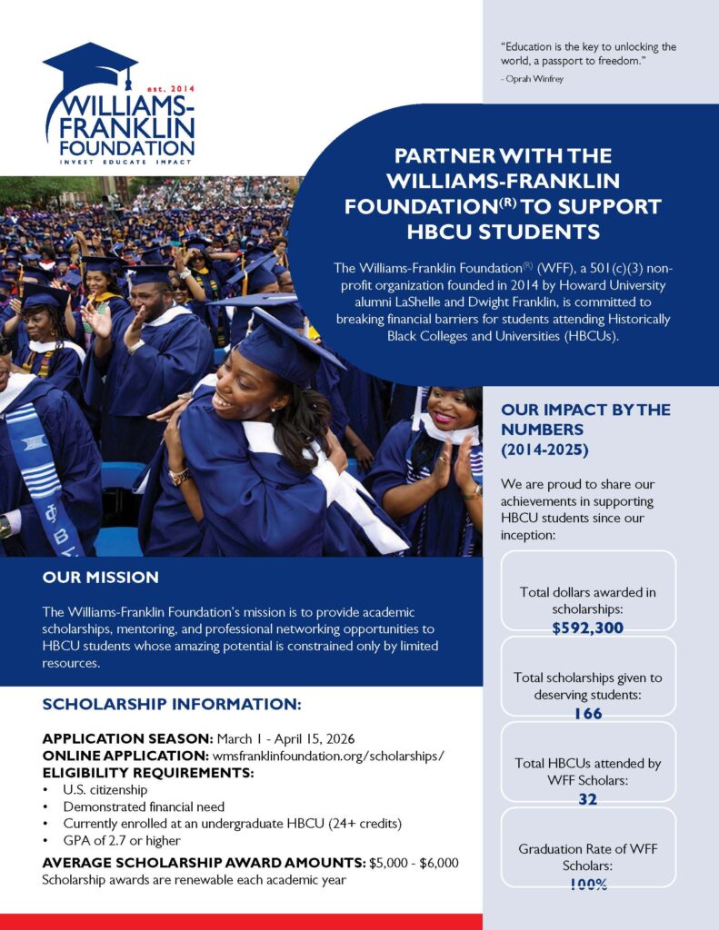 We are proud to offer many unique scholarship and financial aid options through the prestigious Thurgood Marshall College Fund (TMCF), which supports students at HBCUs across the country. TMCF and UMES are opening the door to college for more students from varied socioeconomic and cultural backgrounds through need- and merit-based college scholarships. Learn more about individual scholarships below: